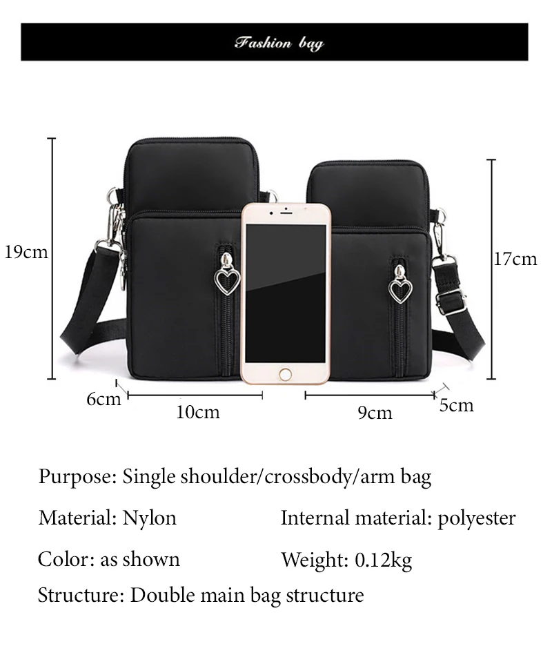 O saco grande do tamanho pode segurar o telefone celular sob 7.2 polegadas.