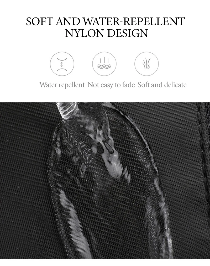 Design de três compartimentos, zíper liso, tecido de pano de oxford.